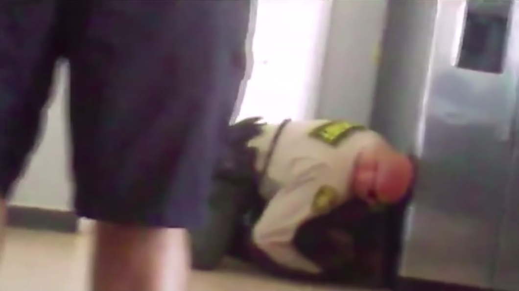 Eventually, Immanuel stops trying to get away from the deputy. The deputy gets off the boy, stands back up, then leans down to yell and curse in Immanuel’s face. He asks Immanuel what his problem is, his face inches away from Immanuel’s. The teenager insists he doesn’t have a problem, which apparently angers the deputy.
