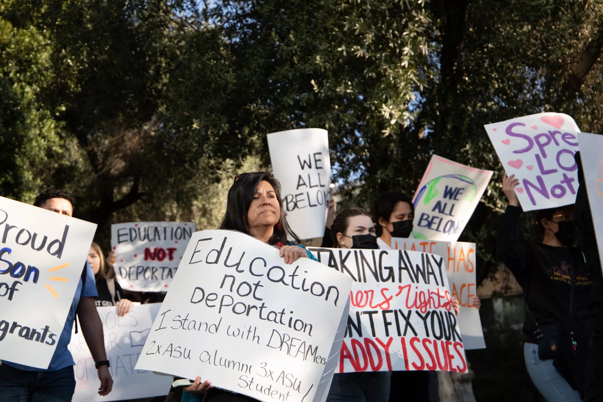 Many of the protesters carried flags and signs with statements like, “Immigrants make America great,” “Proud daughter of an immigrant,” “No one is illegal on stolen land,” “Immigrants welcome, racists NOT” and “Stand with ASU Dreamers.”