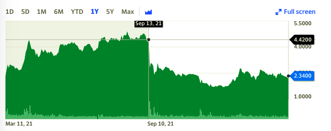 The price per share of the company’s penny stock dropped by 50 percent since August 2021, its 52-week peak of roughly $4 per share.