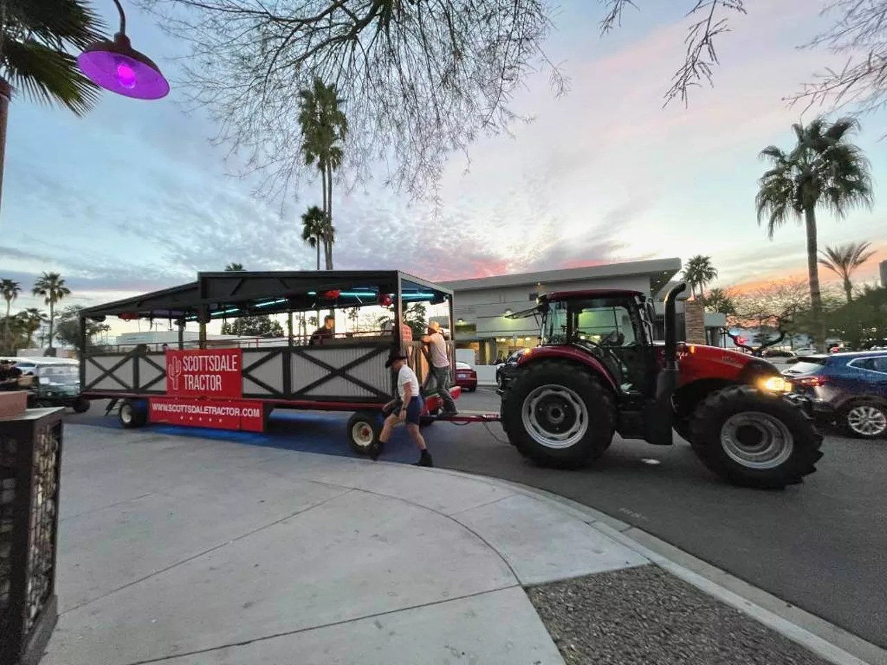 It costs $600 – or $60 per person – to rent out the tractor for an hour. The tour covers a 1-mile loop that starts and ends at Giligin’s Bar near Scottsdale Road and Drinkwater Boulevard.