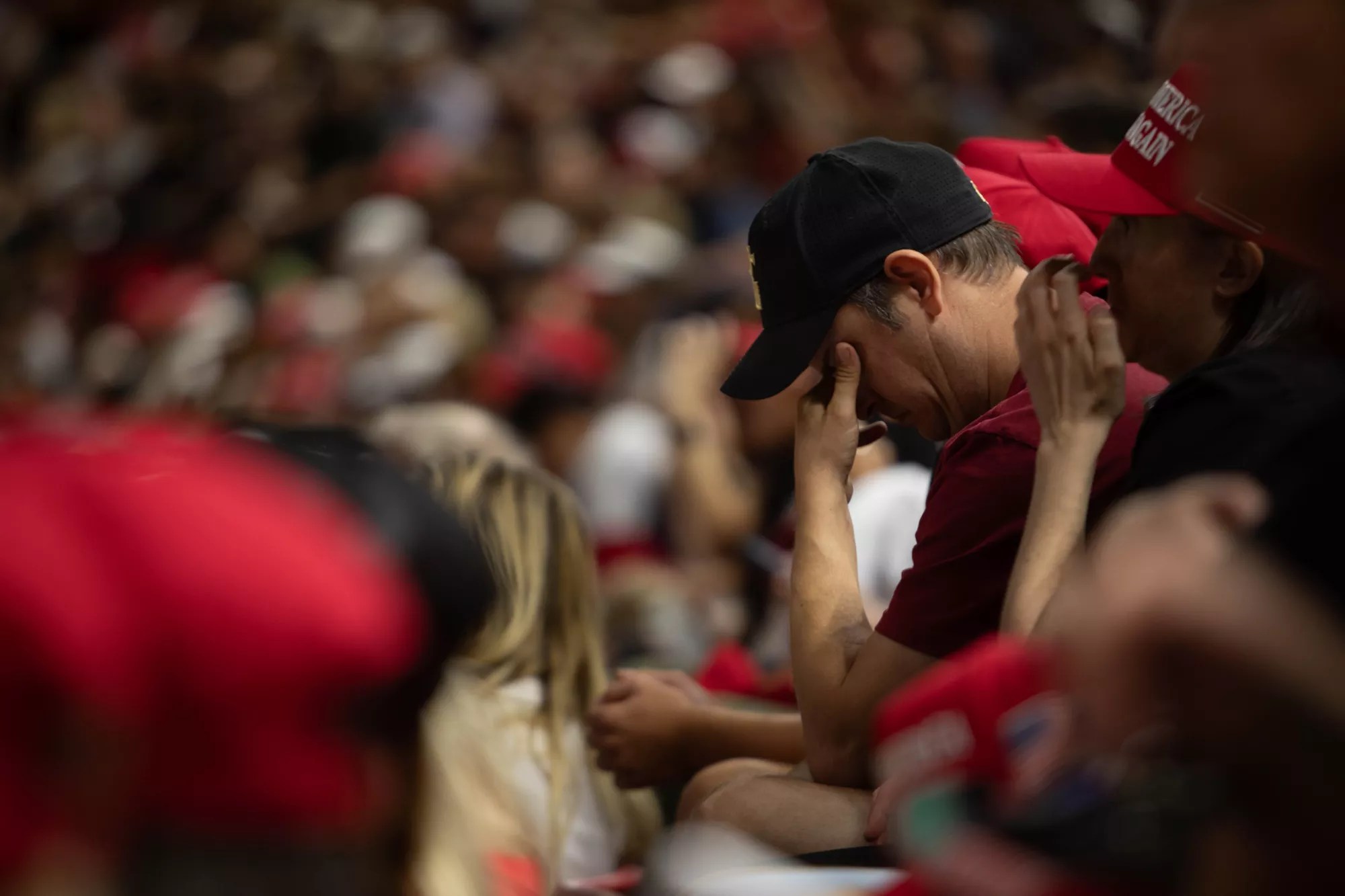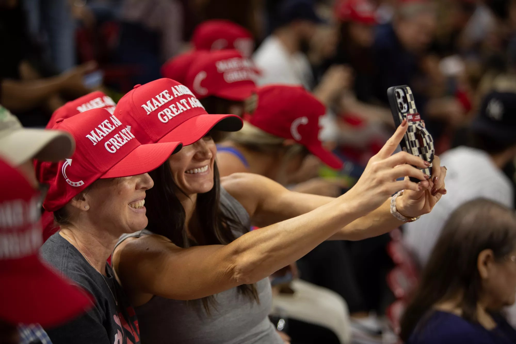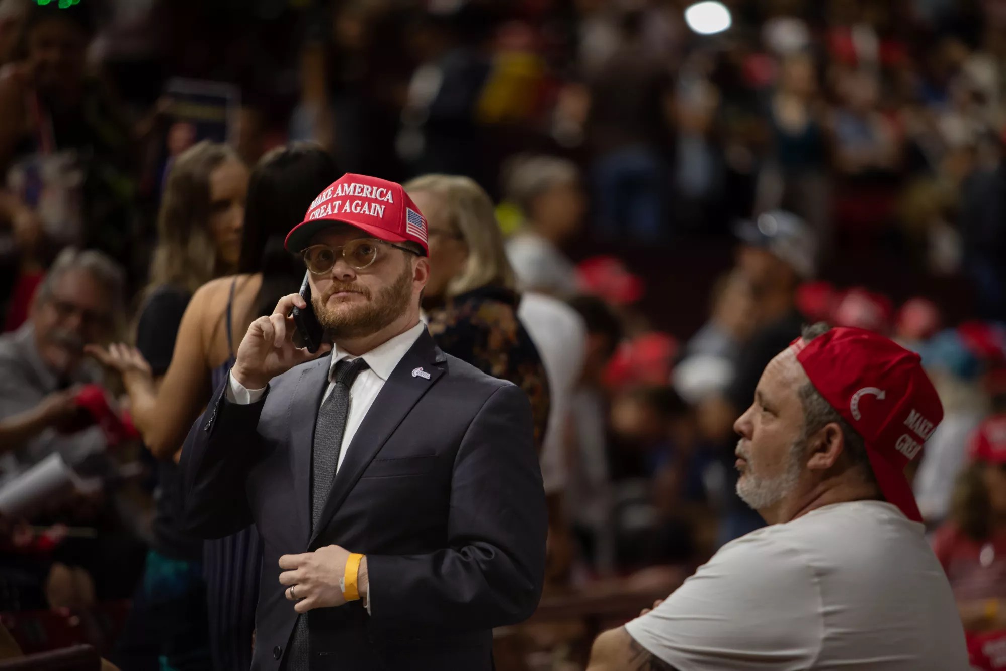 MAGA hats were handed out at the door.