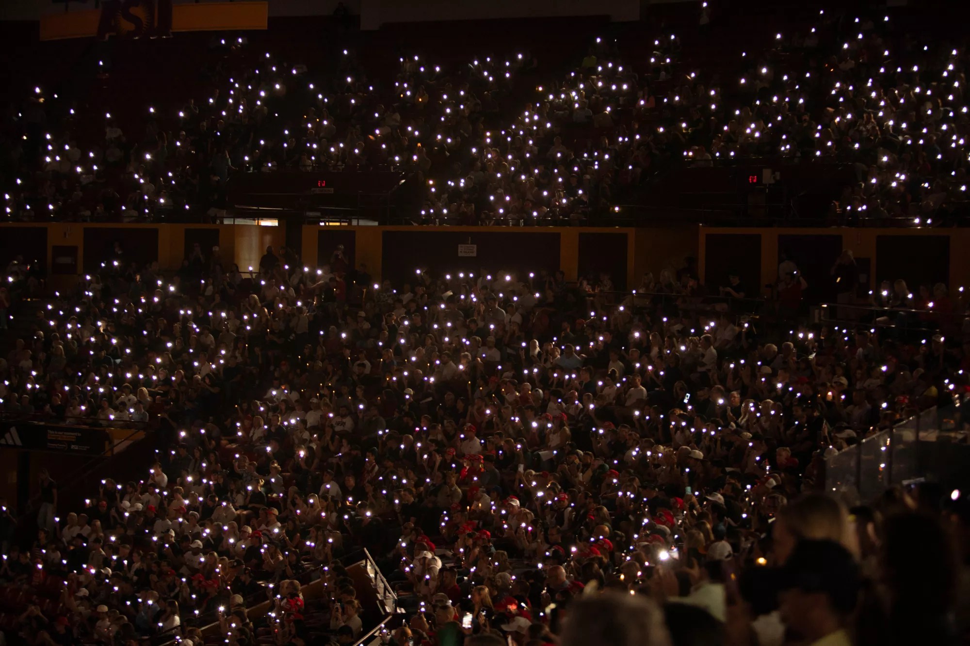 A sea of “MAKE AMERICA GREAT AGAIN” hats filled Desert Financial Arena in Tempe on Monday night as thousands filled the Arizona State University facility to pay homage to Charlie Kirk, the far-right firebrand and activist who was assassinated last week in Utah.