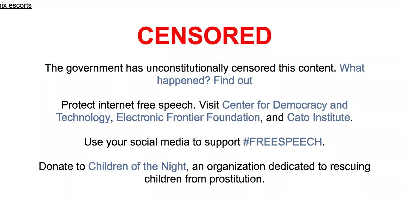 “Whether we call that censorship or not, we should be extremely nervous that our government can [do this],” he adds. “That’s not an online prostitution ad problem. That’s a rule-of-law problem.”