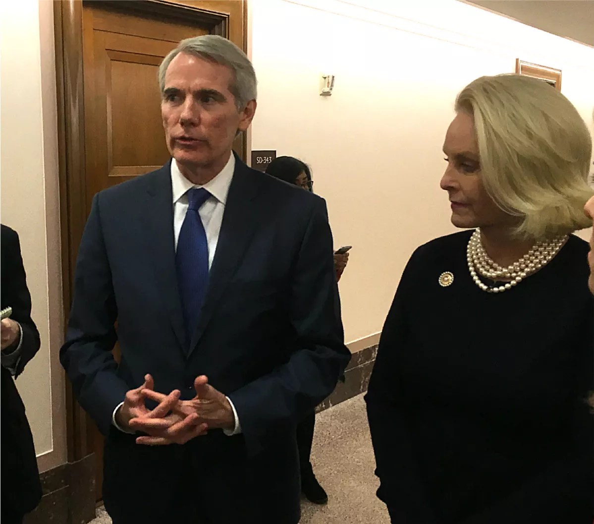 U.S. Senator from Ohio Rob Portman, chairman of the Permanent Subcommittee on Investigations, with anti-sex trafficking advocate Cindy McCain, following the recent Backpage hearing.