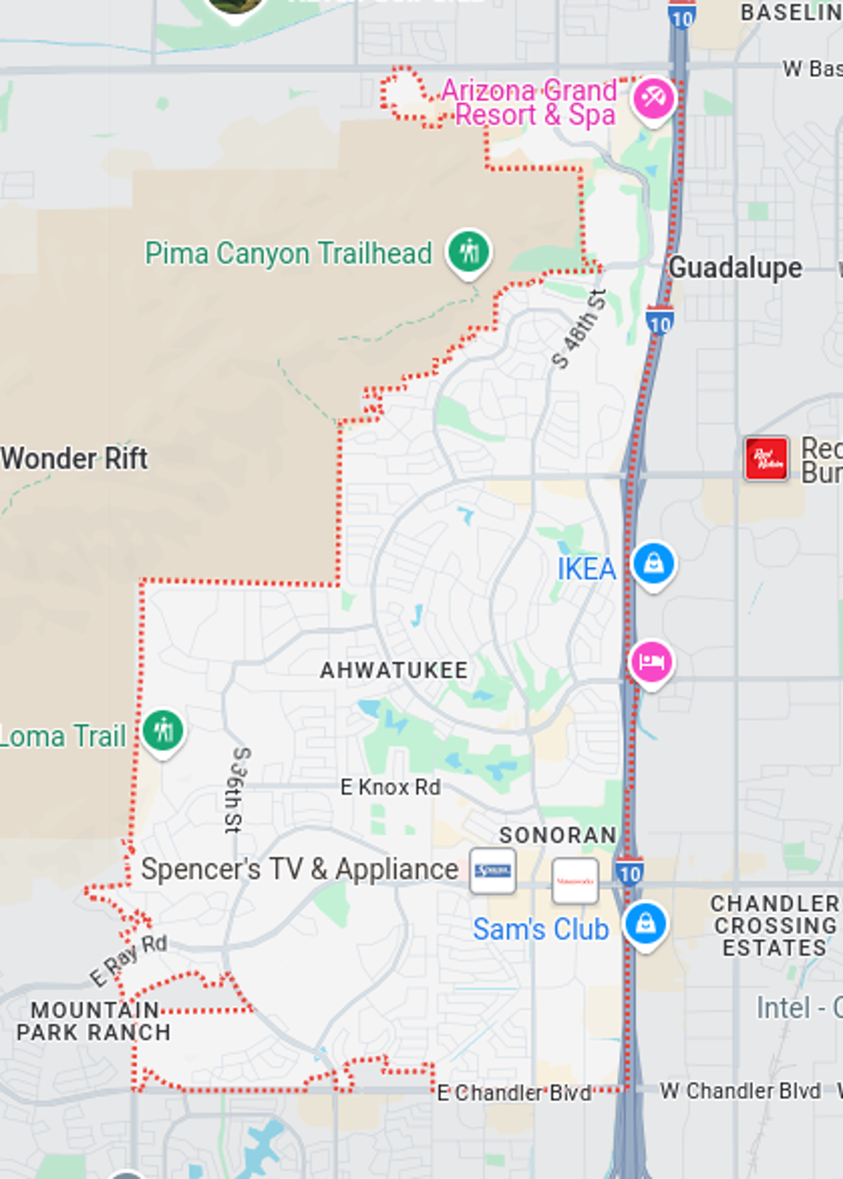 This ZIP Code contains all of Phoenix’s Ahwatukee neighborhood, including the Oasis Water Park and Arizona Grand Resort & Spa.