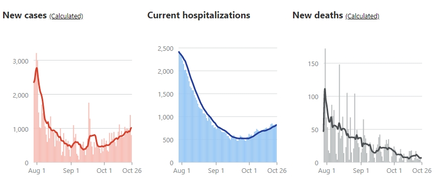 The number of people on ventilators statewide has jumped back over 500. While LaBaer said less people are being hospitalized as doctors better understand how to treat COVID-19 at home, the number of people in the hospital and intensive care unit for COVID-19 continues to tick upward. Once again, more than 80 percent of ICU beds statewide are occupied – a general sign that capacity is being stretched.