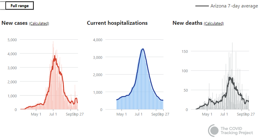 Overall, COVID-19 numbers are holding steady. Besides the large bump due to backfilling antigen test results, we seem to have avoided a large post-Labor Day spike, said Joshua LaBaer, executive director of Arizona State University’s Biodesign Institute, last week. We are seeing testing levels pick back up again, but LaBaer would like to see the state reach over 10,000 tests a day, and preferably as many as 15,000.
