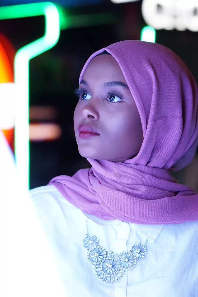 In the relatively niche world of headscarf fashion lines, Nurhussen and Hassan offer luxury-quality scarves without the exorbitant price tag; most are between $12-14. According to Nurhussen, the co-founders take an edgier approach to fashion, such as a recent photoshoot that featured intense pink-and-blue neon lighting.