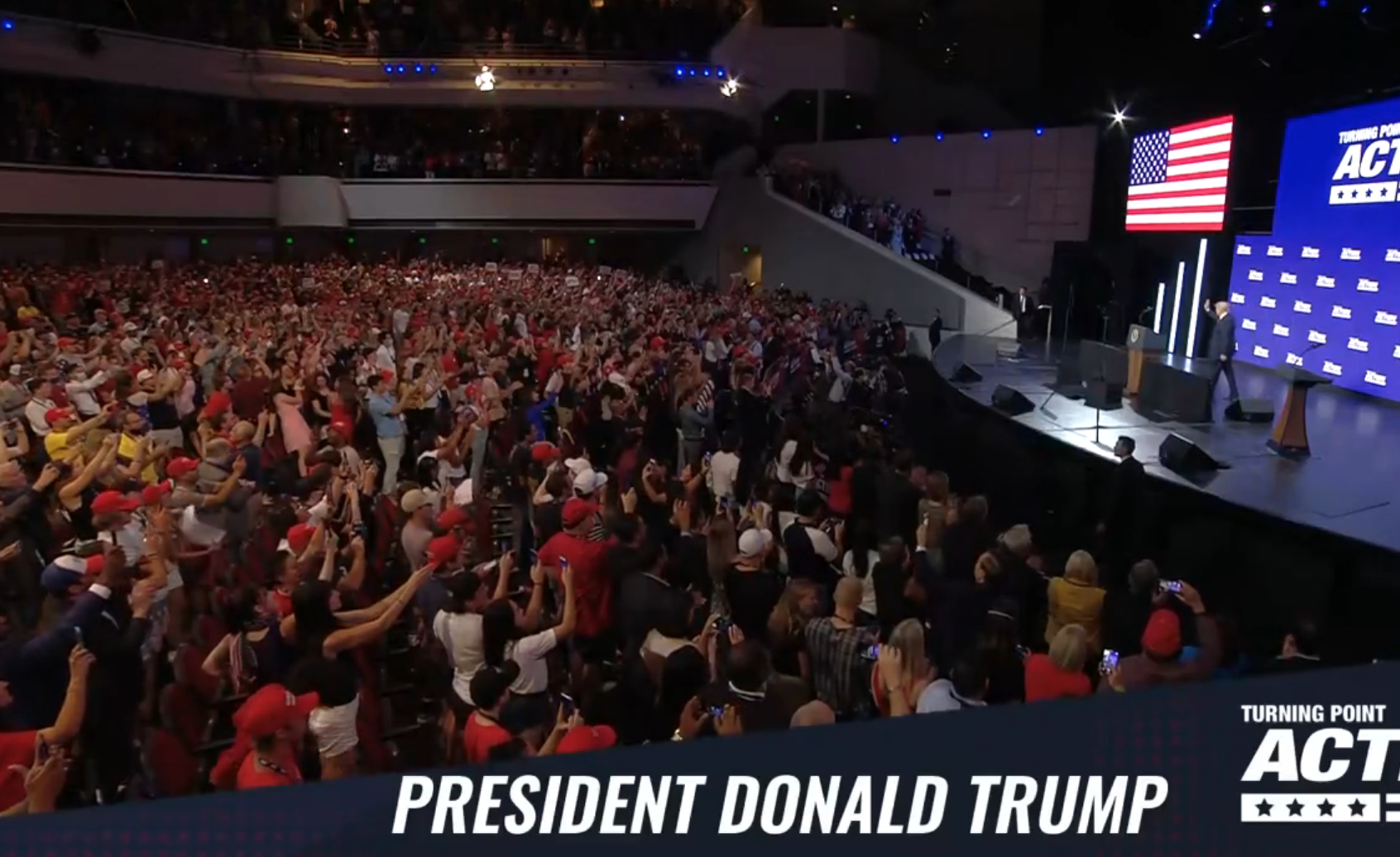 Speaking to a roughly 3,000 person-capacity auditorium at Dream City Church in Phoenix, which hosted the event put on by Students for Trump, the president gave a law-and-order pitch for his candidacy and the Republican party.