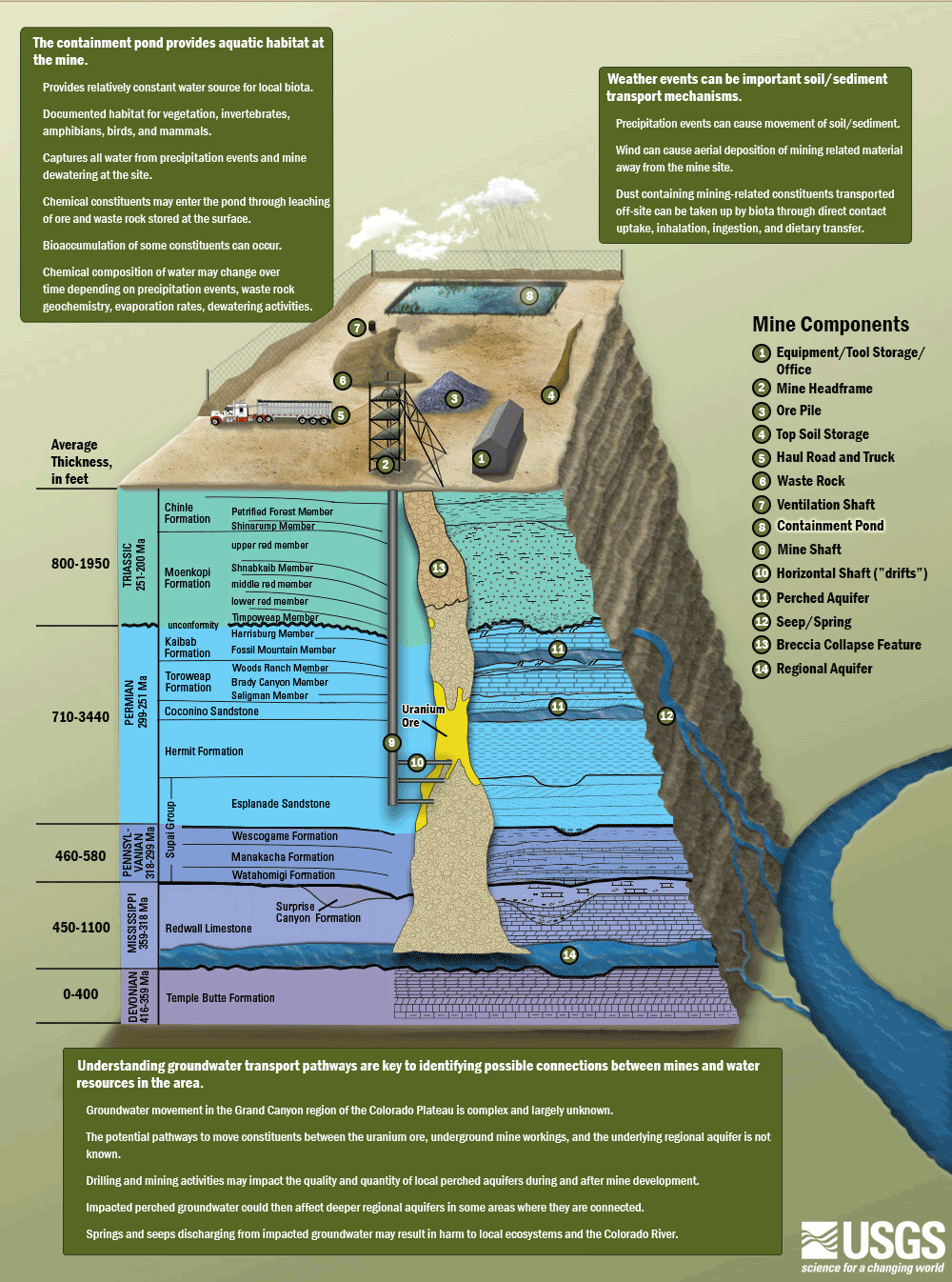 In the presence of oxygen, uranium is water-soluble, which means that as groundwater flows through soil and permeable rock, it carries the dissolved mineral with it. In northern Arizona, uranium carried by groundwater has collected in tubular underground deposits of broken rock called breccia pipes. The concern is what could happen when mining exposes these deposits to the elements.
