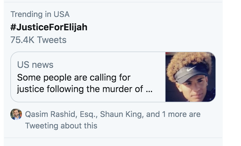 #JusticeforElijah now has over 101,000 tweets on Twitter.