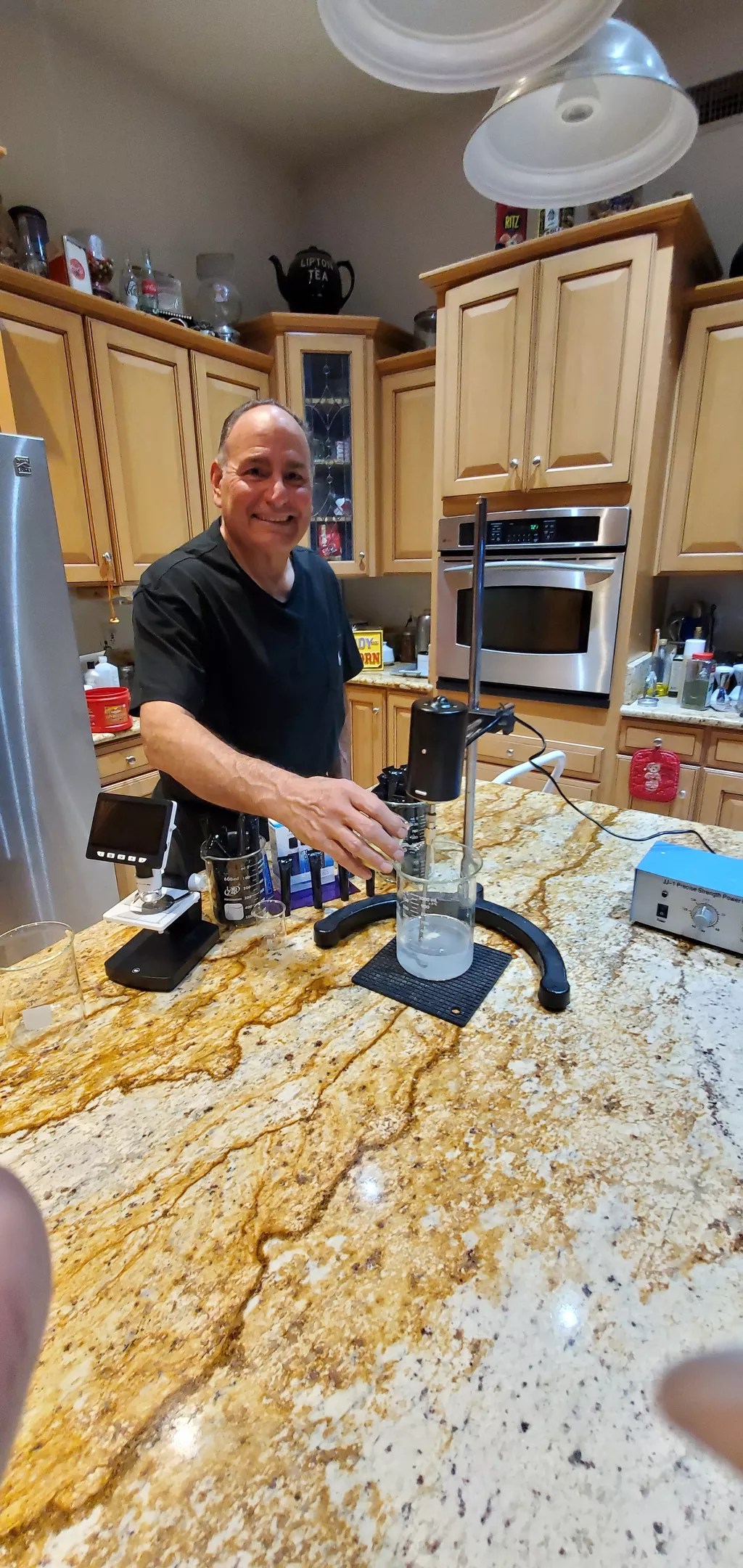Joseph Verdone experimenting in his kitchen. The Scottsdale-based inventor introduces OMGX to the CBDa lubricant world.