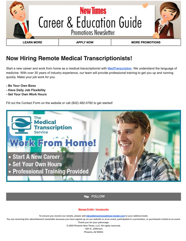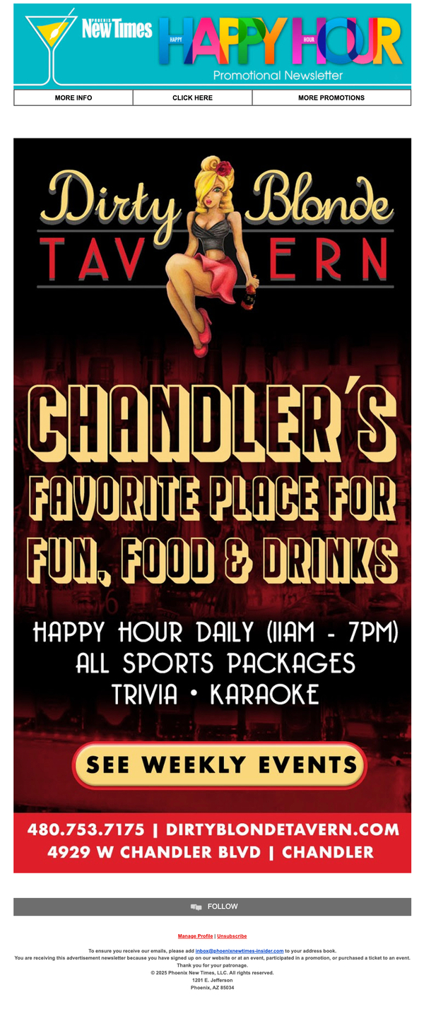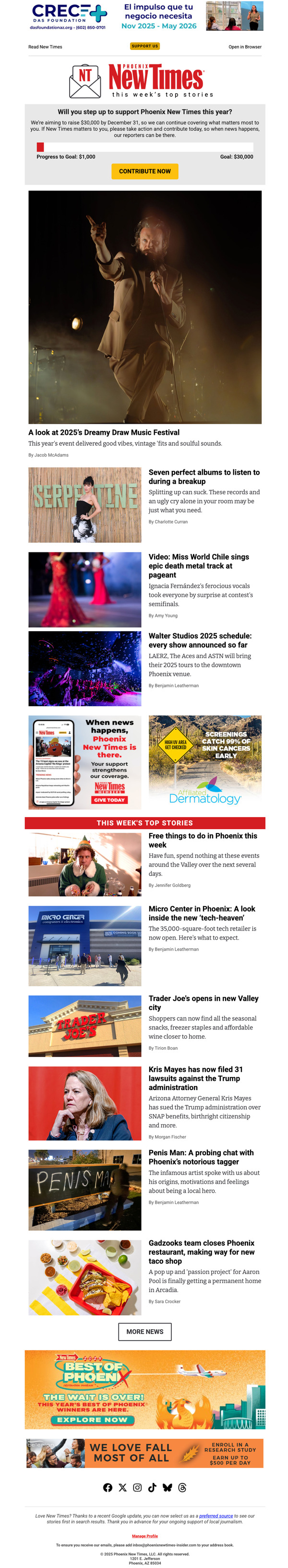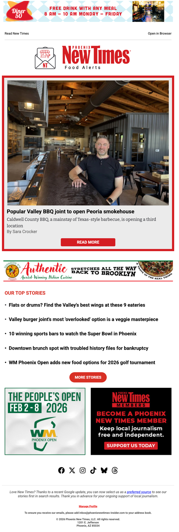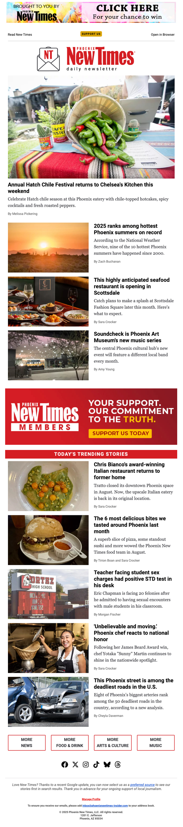 Stay informed with our daily digest of the most popular news, music, food and arts stories in Phoenix. Delivered every morning Monday through Friday.