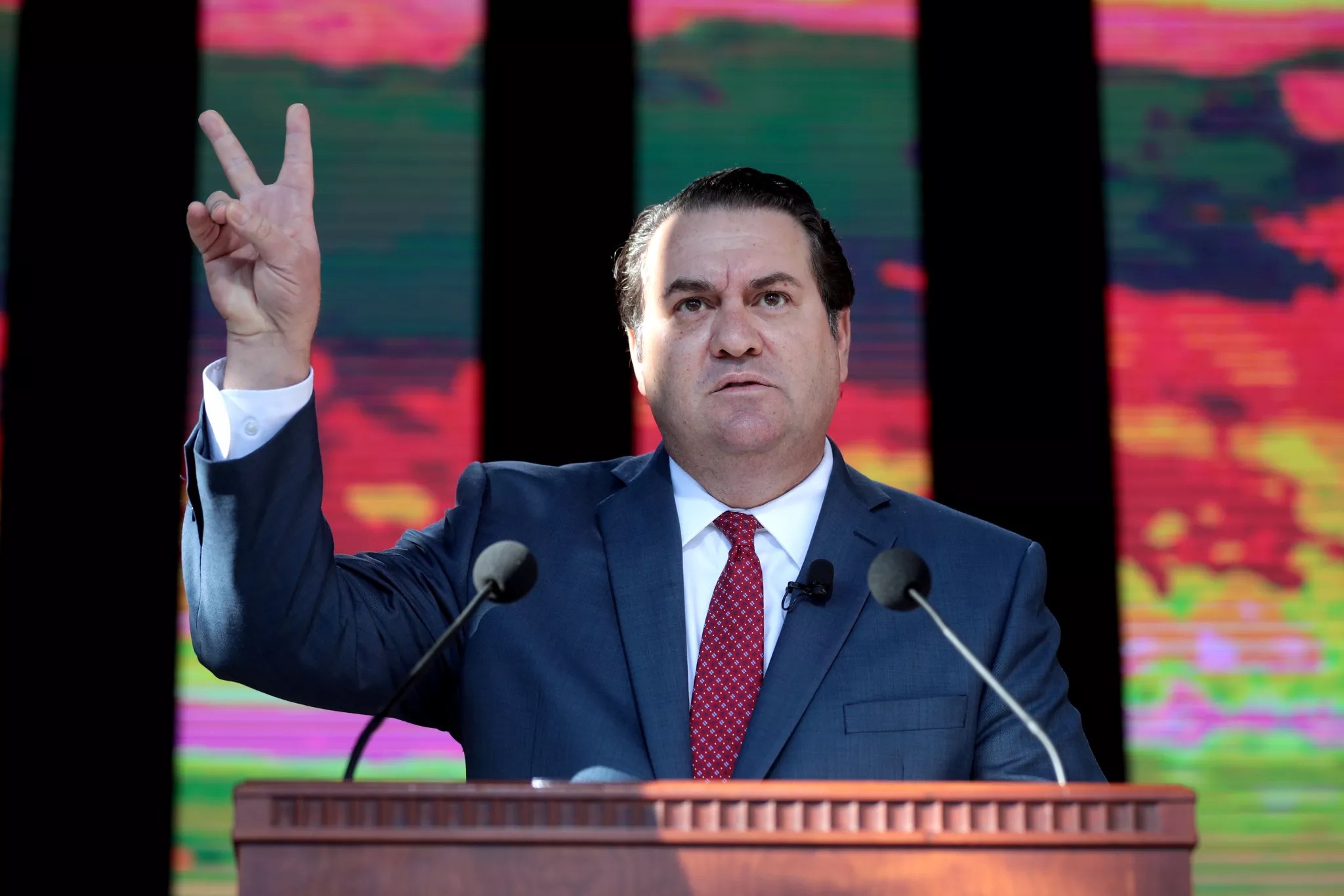 Brnovich flashes a V for victory sign, ’cause when it comes to ASU, a peace sign it is not.