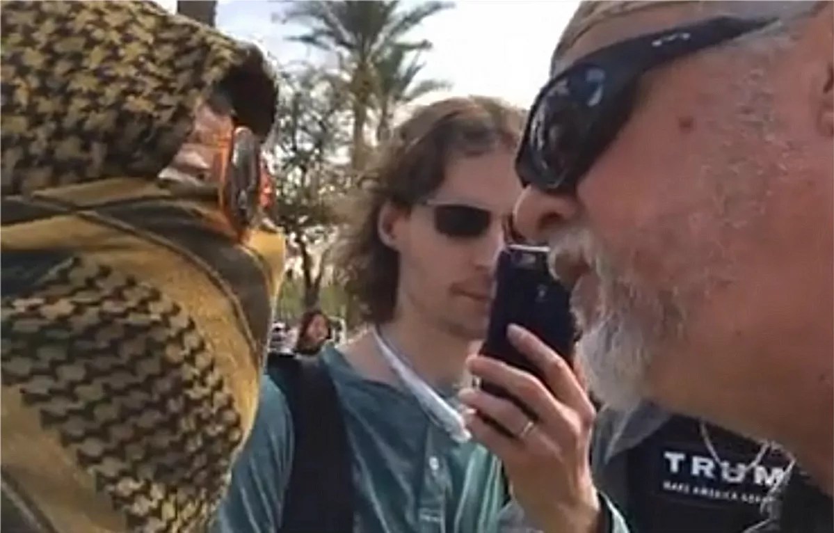 Like many other Trump supporters nearby, he objected to the F-bomb on her sign, though I found this disingenuous, since several of his compatriots had no problem throwing the word back in her face.
