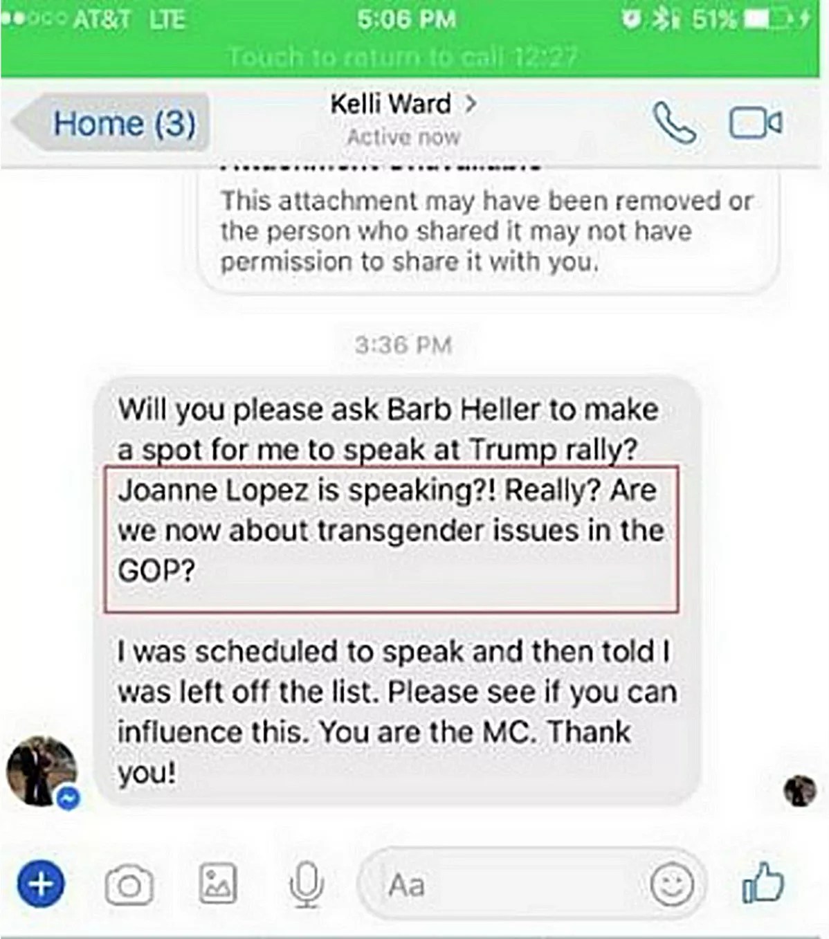 “Joanne Lopez is speaking?!” reads the screenshot now being passed around Facebook. “Really? Are we now about transgender issues in the GOP?”