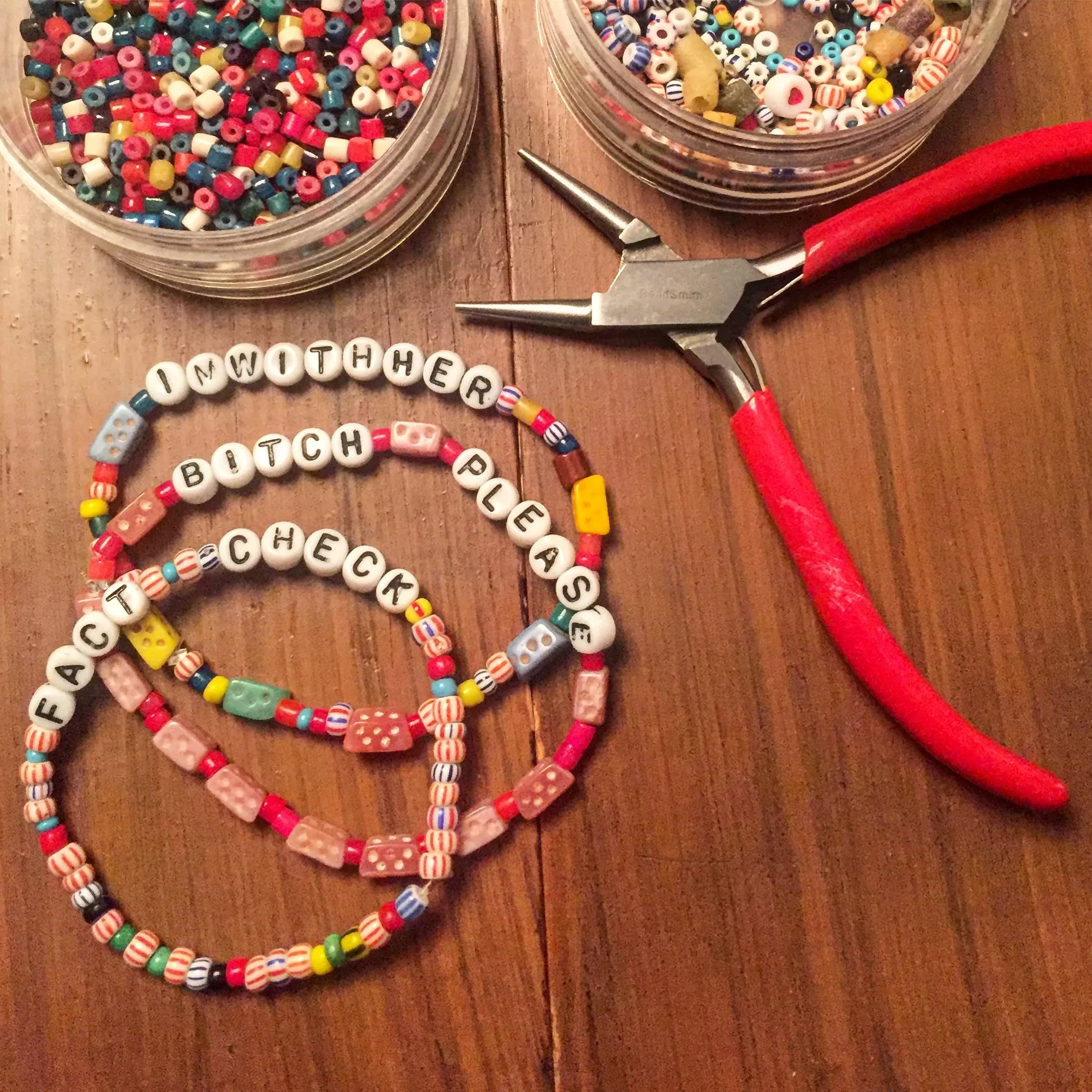 I put a Hillary sticker on my computer and I actually went to a craft party and made Hillary bracelets, including one that spelled out “I’M WITH HER” in tiny lettered beads. Annabelle, my 15-year-old, swiped it and wore it for several days until it broke, and even though I’m very superstitious I refused to take it as a bad sign, like I would have in any other scenario. I was that convinced that Hillary would win.