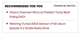 Above the ads in the top right-hand corner will be links to two more of our most recent top stories in a box labeled RECOMMENDED FOR YOU. We think these are stories you will like.