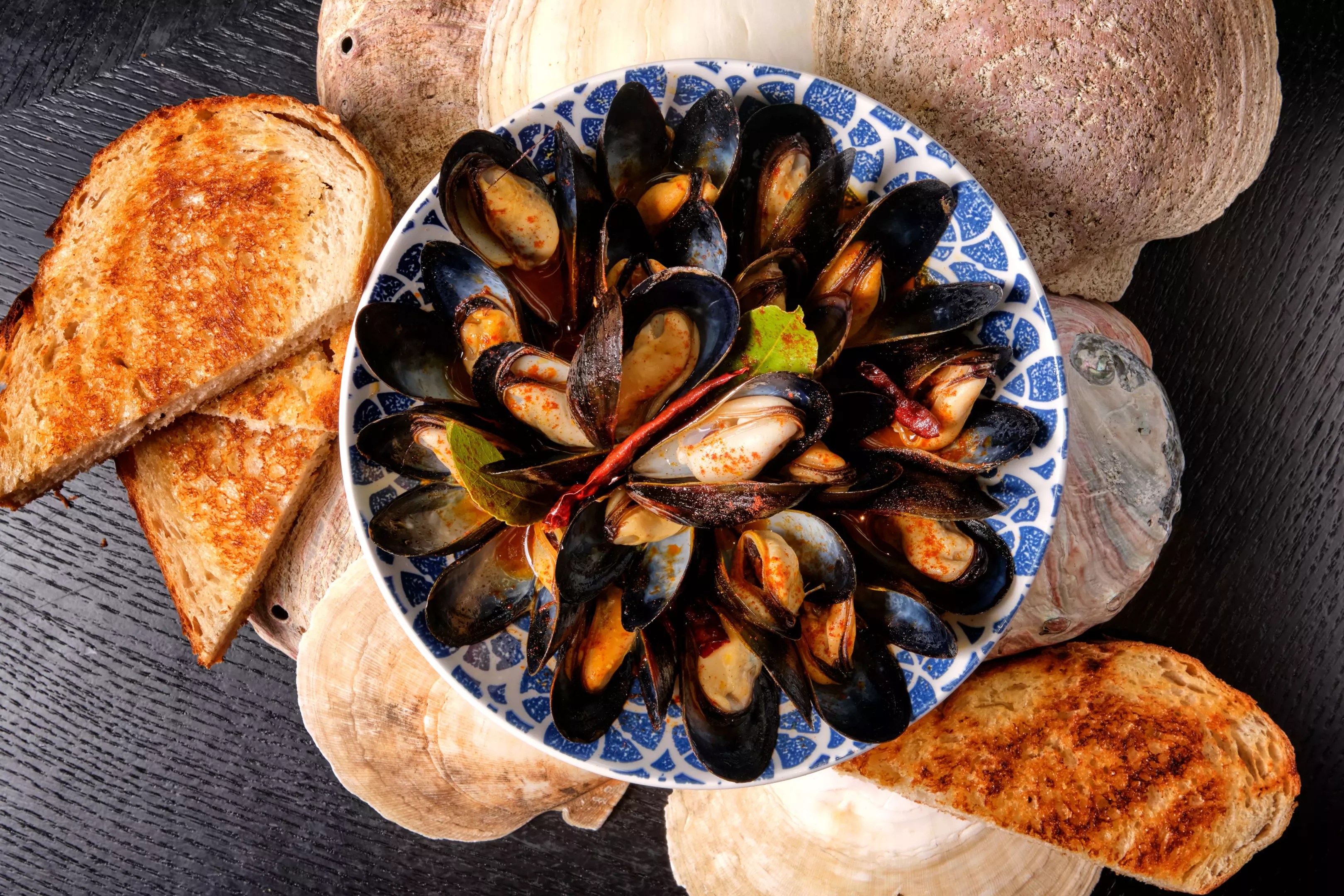 Bar Mar is a seafood-driven eatery whose menu includes raw items, conservas, shareable plates and larger bites. Mussels in escabeche, pictured, are served with sourdough.