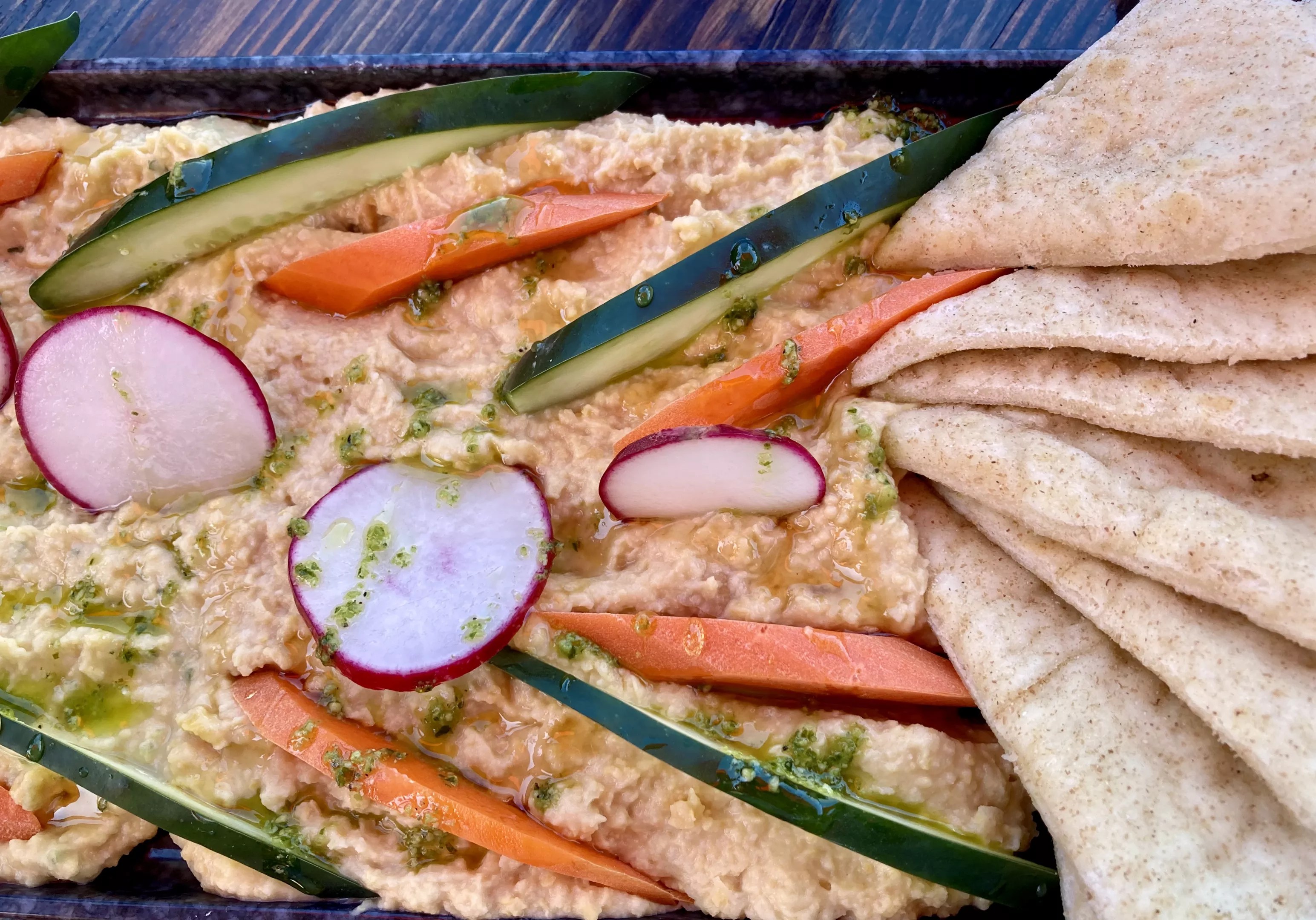 We started with meatballs and hummus, which arrived quickly and in ample serving sizes. The hummus wasn’t next-level or anything (this is just a brewery, after all, not a first-rate Mediterranean eatery) but there also wasn’t much left by the time we were done. Amid the jalapeno-flavored hummus was crisp, seemingly fresh cuts of carrots, radish, and cucumber, plus warm pita bread.