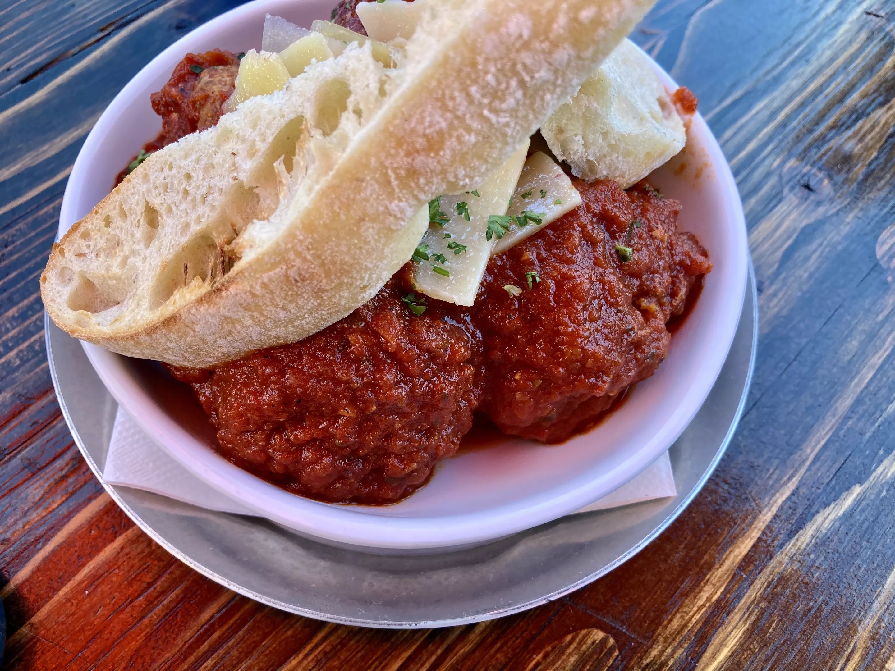 The meatballs were almost too well-plated to disturb – a slice of focaccia bread was delicately balanced above the three balls. The meatballs themselves were a blend of pork and spicy brisket, and even better when loaded with the house marinara sauce (which could have been less sweet) and slices of parmesan. As much as I’m curious about the garlic knots, these meatballs might be ordered again next time.