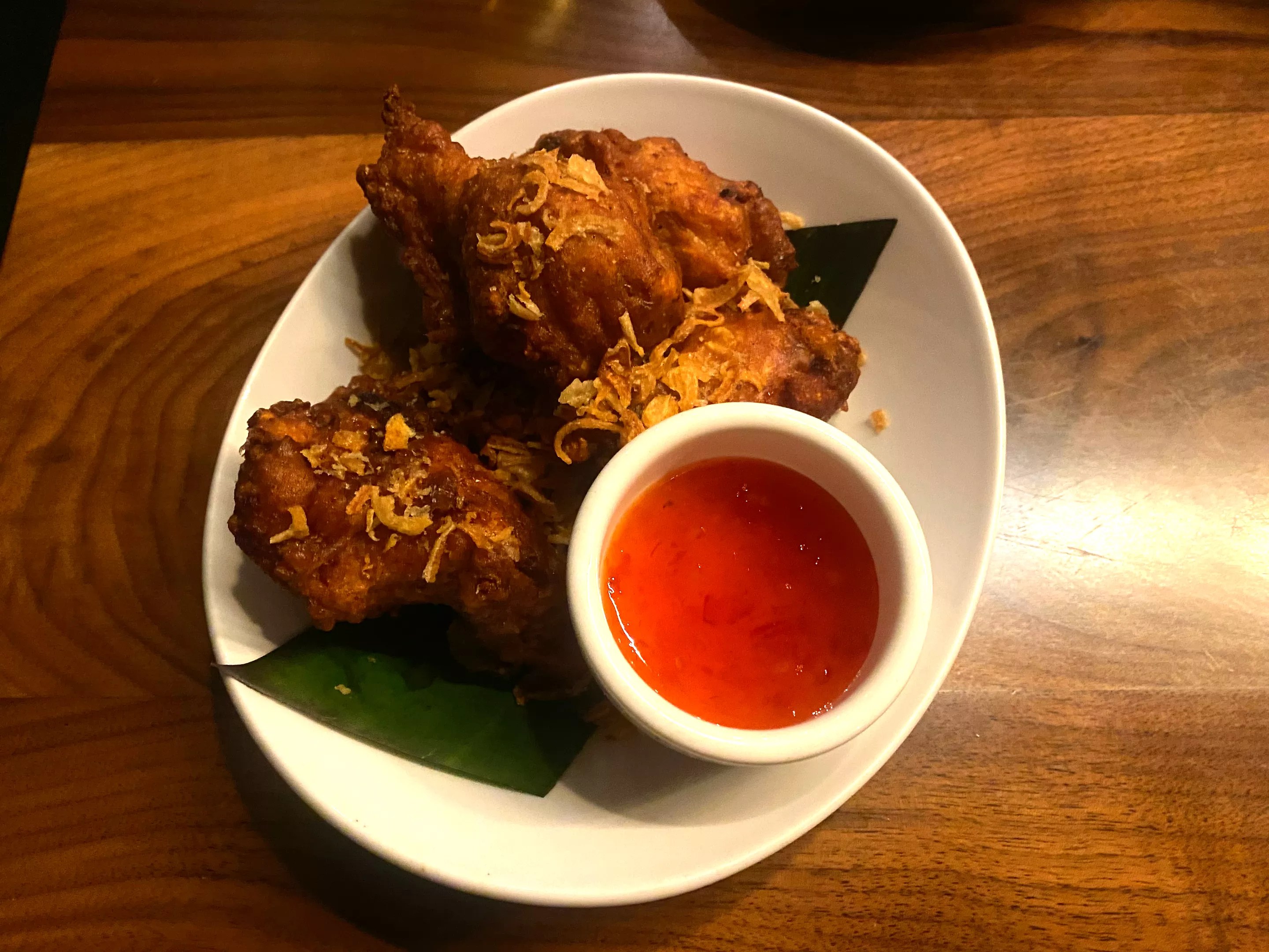 The Gai Tawt Won Pen, crispy fried chicken with Thai chile sauce, appeared last. It was a solid dish, crunchy and substantial, but it paled in comparison with the punchy flavors of its counterparts.