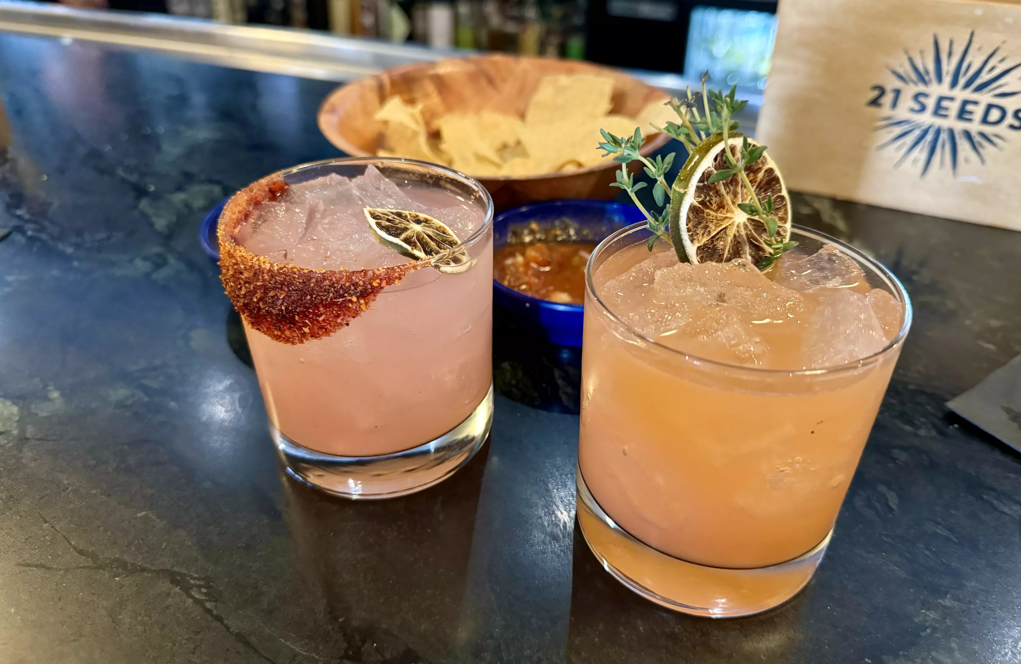 The cocktail game at the Guadalupe on Main packs a punch. Offerings range from customizable margaritas, left, to signature sips, including the mezcal-based Watermelon Moonshine, right.