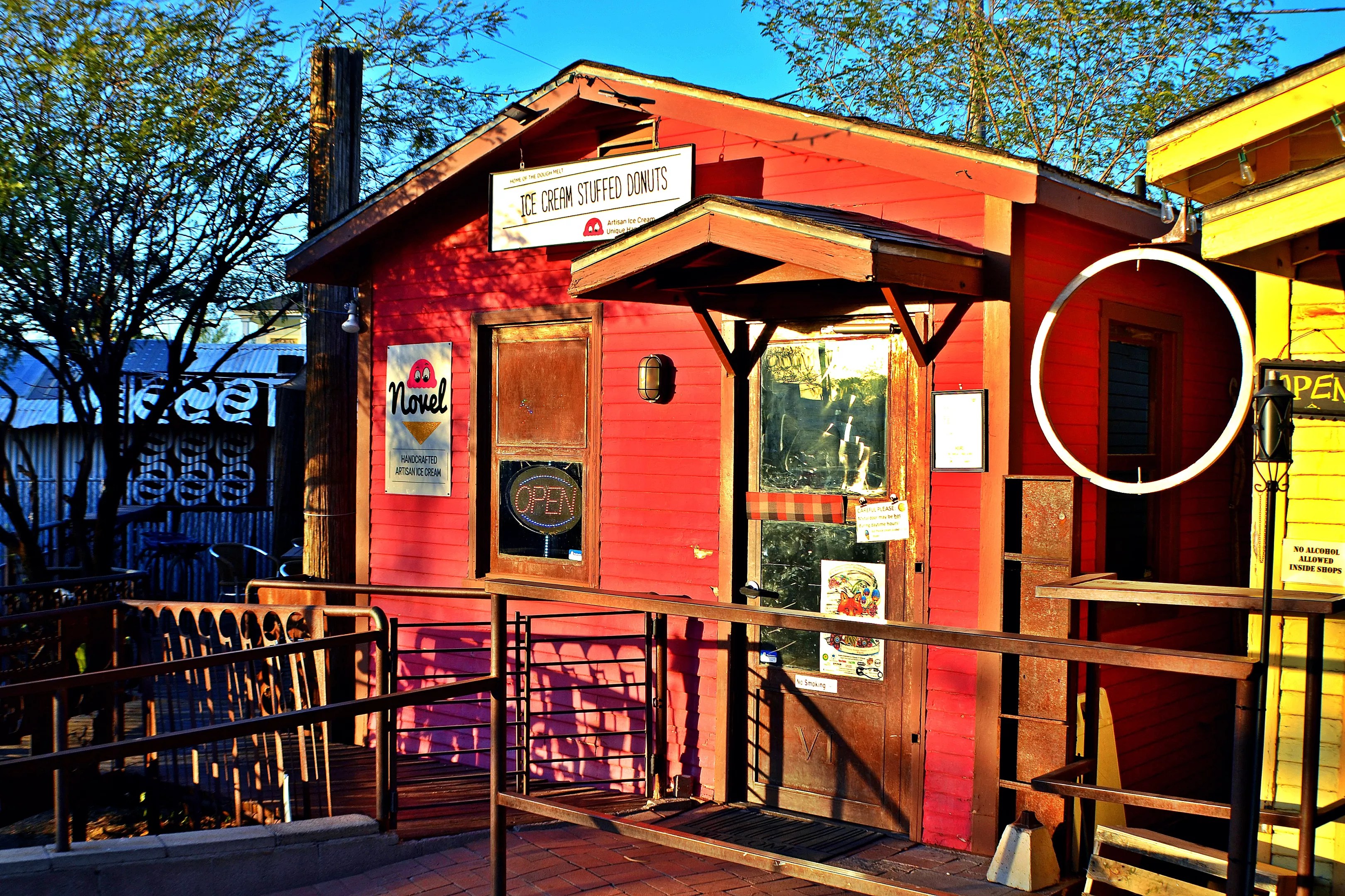 At Novel, you can order your ice cream in a traditional cone, but good luck trying to resist the shop’s signature offering: The Dough Melt, a glazed doughnut stuffed with the ice cream of your choice.