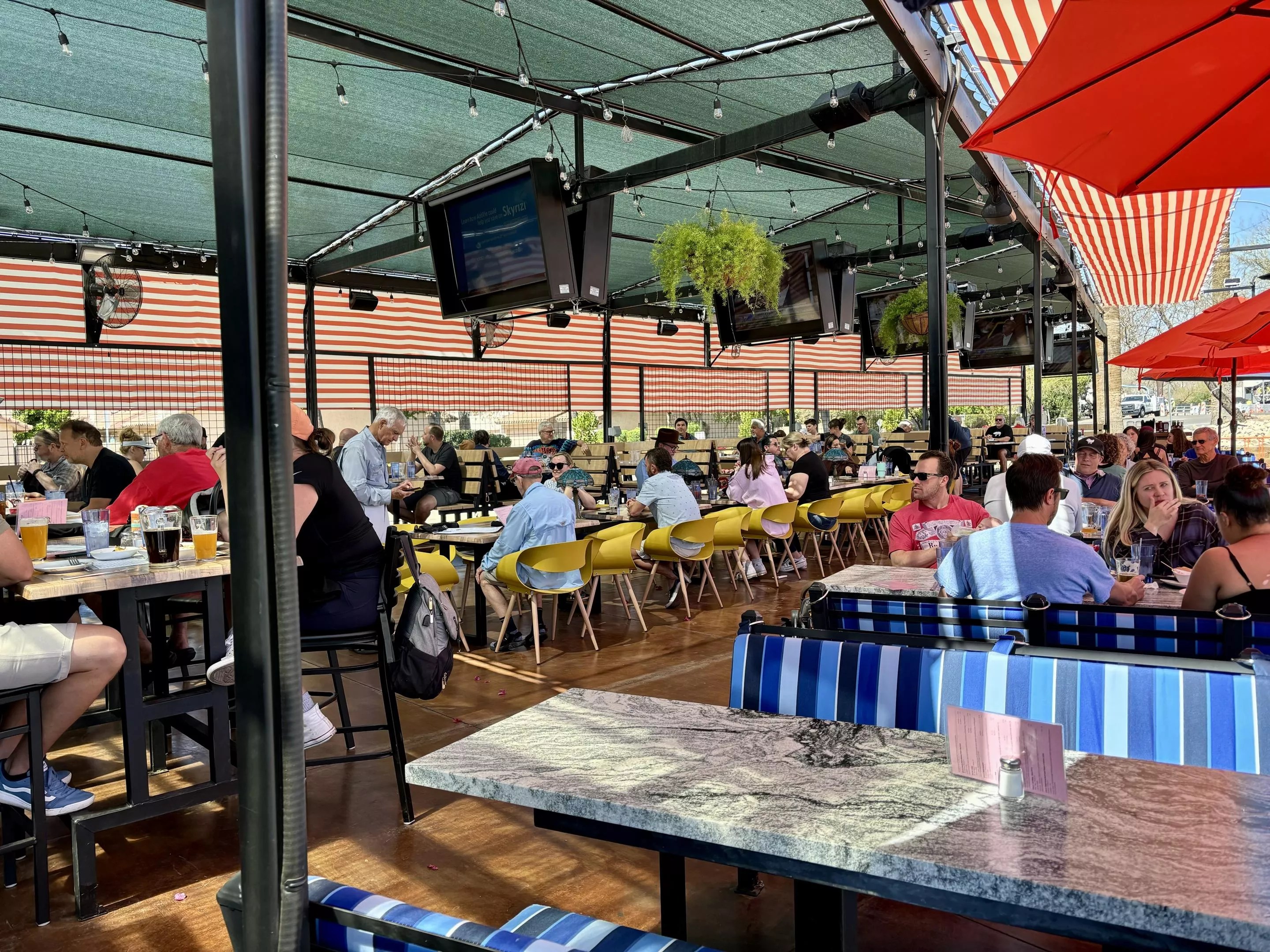 The interior seating area of O.H.S.O. is quite small, featuring a bar with plenty of TV screens to catch the game. The bar opens onto the large patio area.