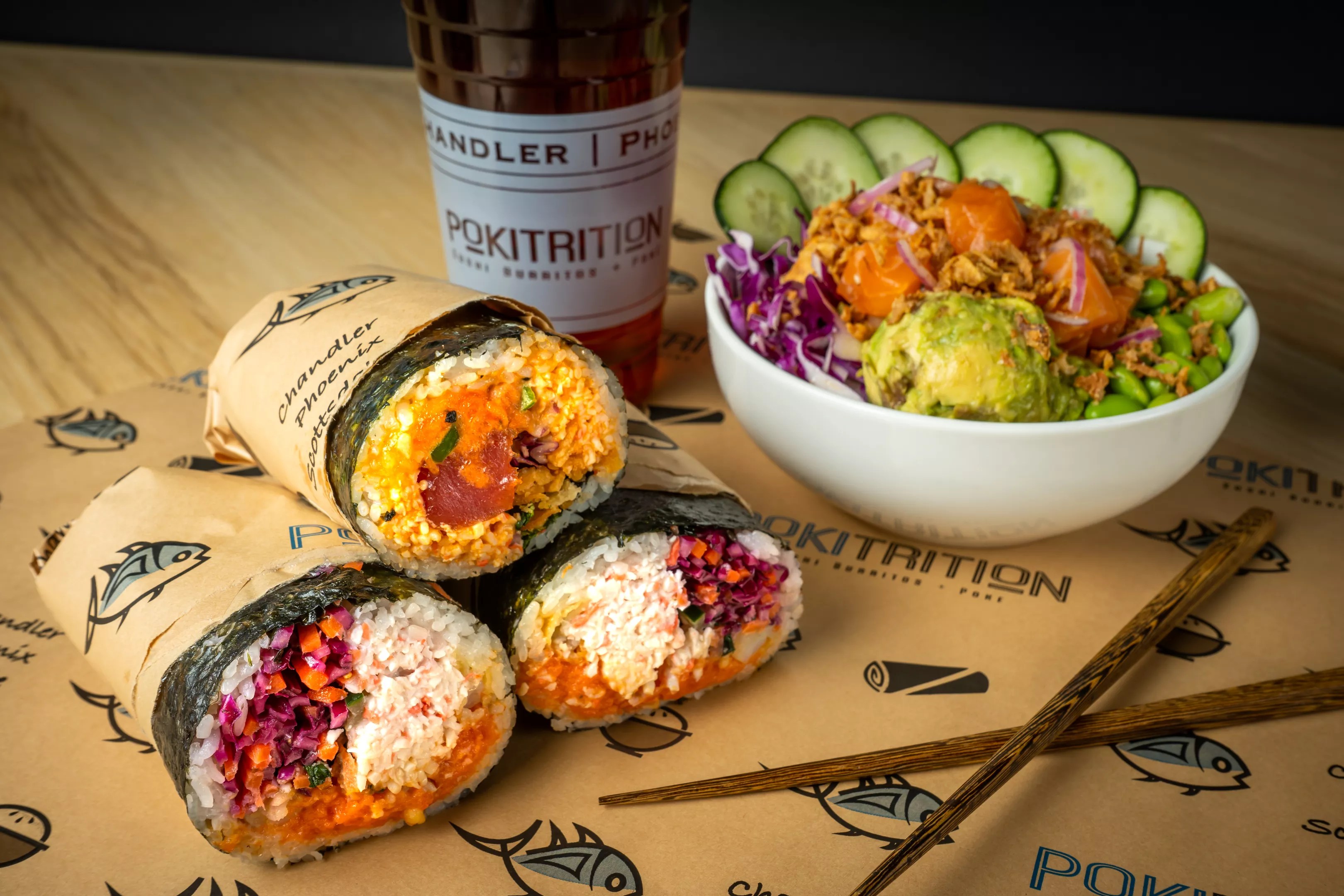 Salt Tacos y Tequila Sushi burritos and poke bowls by Pokitrition. Photo by Pokitrition