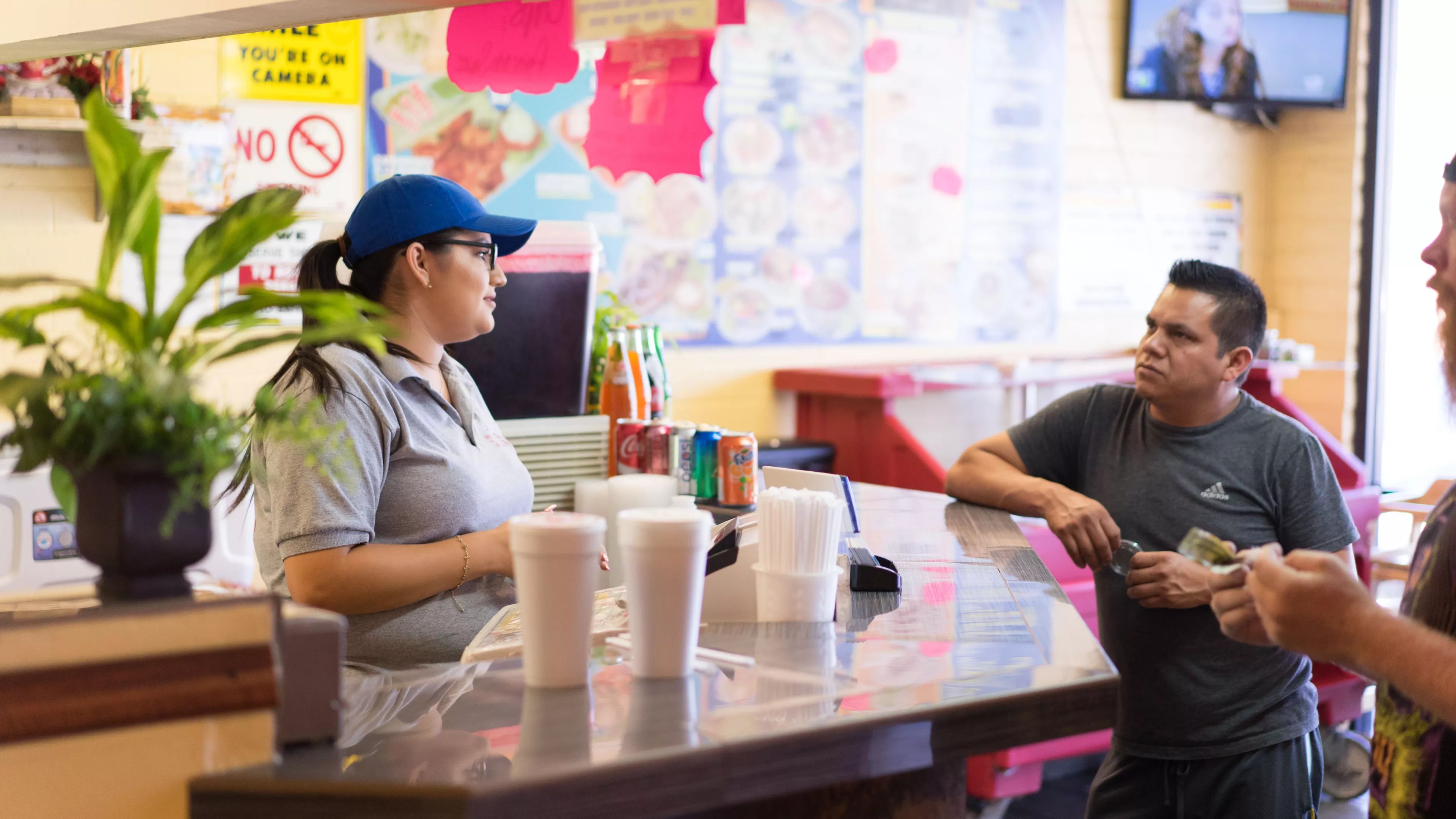 After the Reyes arrived, they made some adjustments to the burritos.