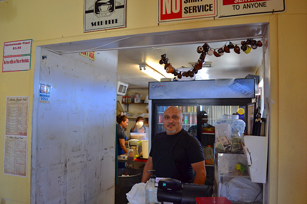 “We have a huge menu for such a tiny place,” says owner Luis Mosqueda in Spanish, laughing.