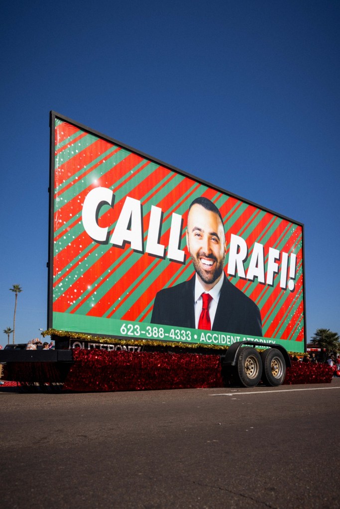 This was Rafi Law Group’s third appearance in the Glendale Hometown Christmas Parade, which over the past decade has established itself as one of the area’s most beloved holiday traditions. All proceeds from the parade benefit Hope for Hunger, a Glendale-based food bank that brings help and hope to local families in need. Hope for Hunger Food Bank provides emergency food and more for roughly 130 families in Glendale and parts of Phoenix and Peoria, and parade spectators are encouraged to contribute non-perishable food items for the food drive.